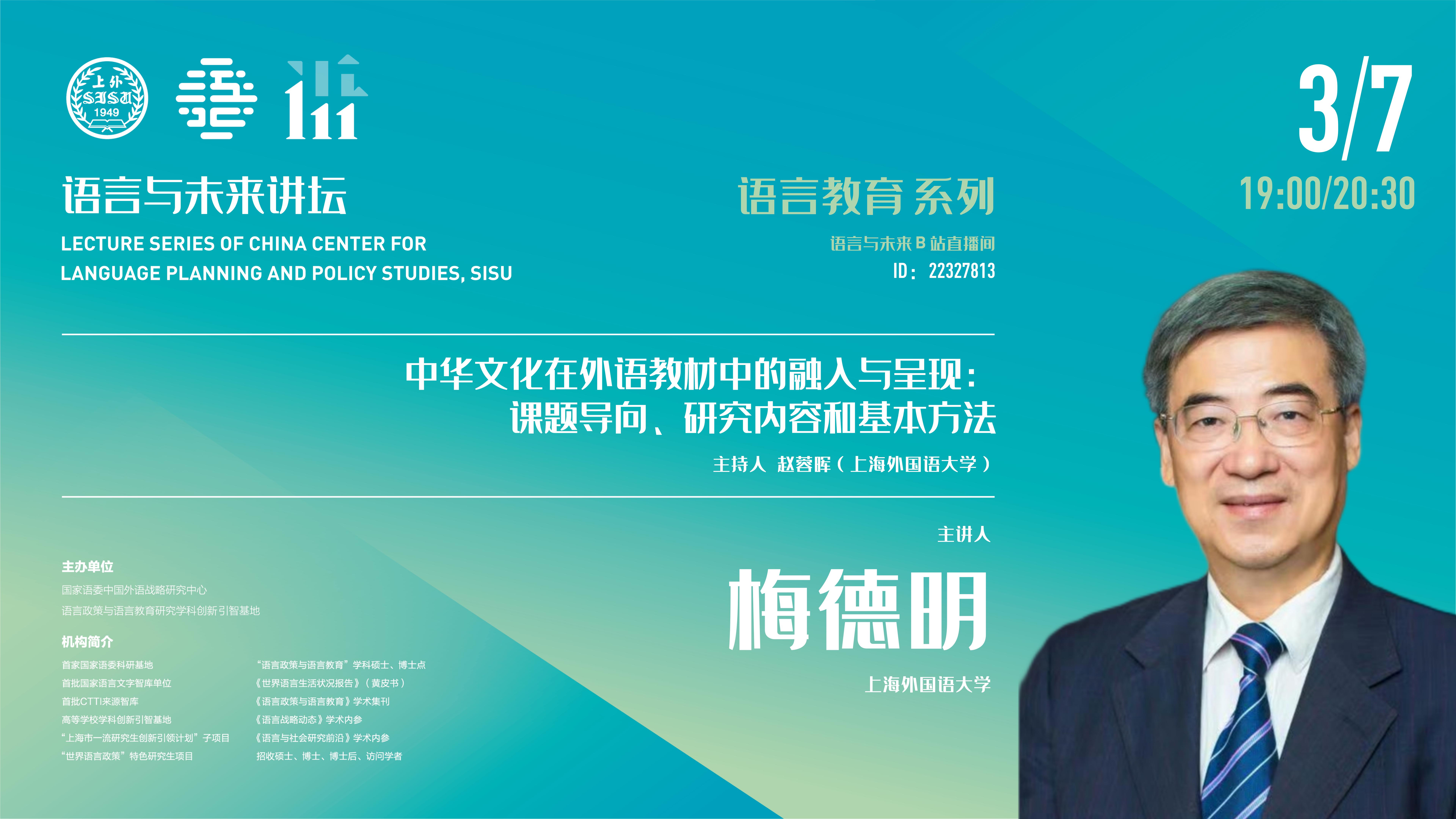 题目 | 中华文化在外语教材中的融入与呈现:课题导向、研究内容和基本方法 Chinese Culture in Foreign Language Textbook Development |
