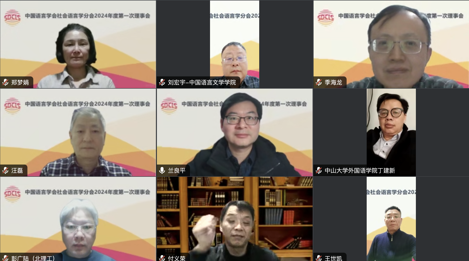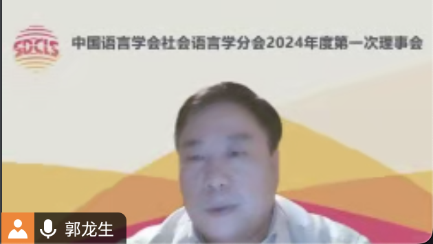 2024年2月7日,中国语言学会社会语言学分会在线召开2024年度第一次理事会,分会名誉会长田海龙、会长赵蓉晖、副会长汪磊、梁云、郭龙生、潘海英、丁建新、赵永峰,以及60余名理事、特邀代表参会。会议由分会副会长兼秘书长郭龙生主持。