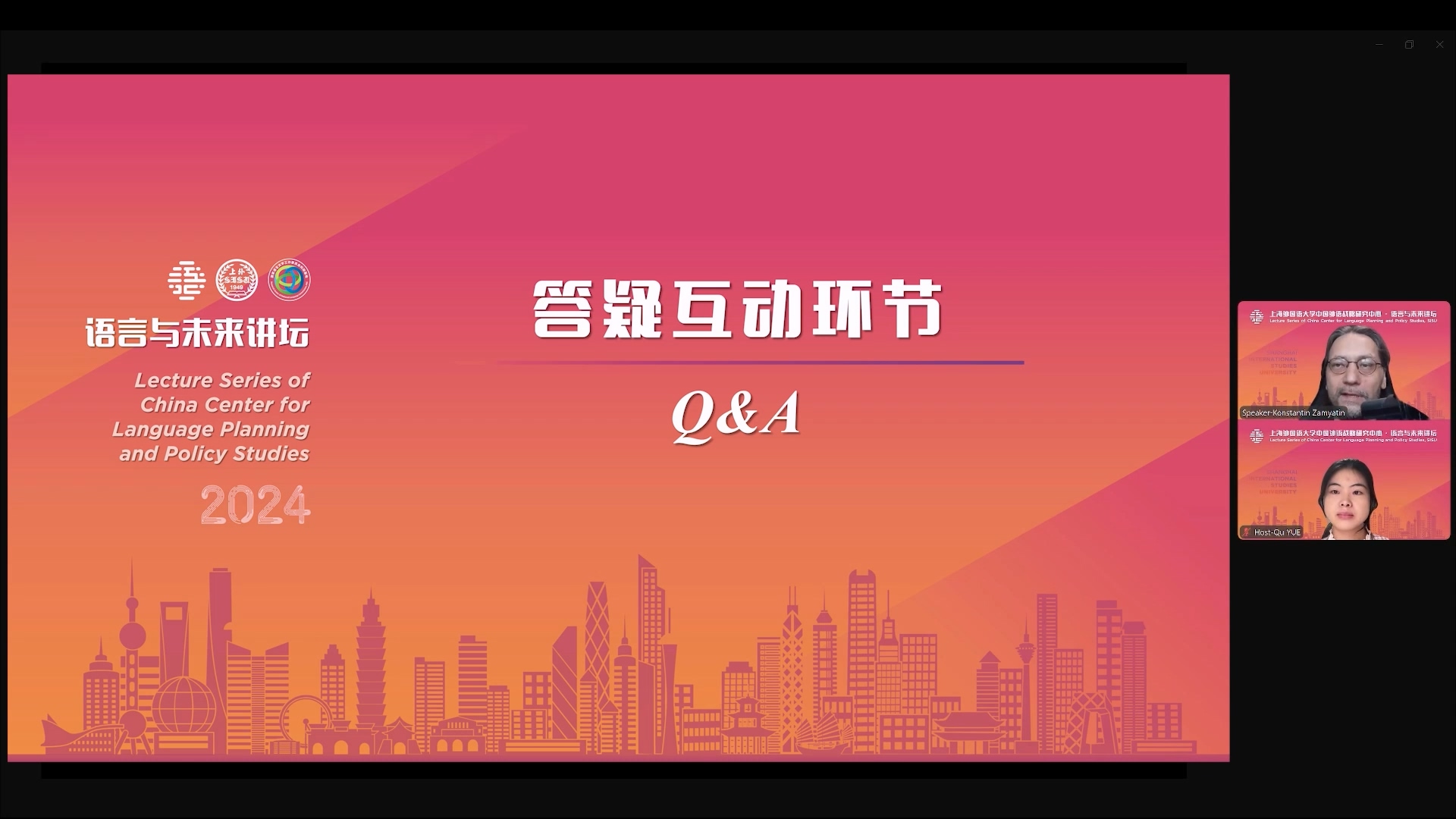 2024年4月18日,俄罗斯科学院研究员康斯坦丁·扎米亚京博士做客中国外语战略研究中心“语言与未来讲坛”,做了题为《当代语言、社会与国家研究的跨学科方法:理论与实践》的学术讲座。本次讲座由上海外国语大学在站博士后岳曲老师主持,近500名听众在线参加讲座。