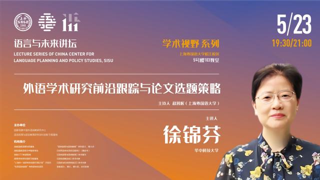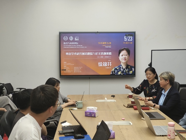 2023年5月23日,华中科技大学徐锦芬教授做客“中国外语战略研究中心讲坛”,做了题为《外语学术研究前沿跟踪与论文选题策略》的学术讲座。本次讲座由中心执行主任赵蓉辉教授主持,除了现场观众外,不少师生通过线上方式参加了本次讲座。