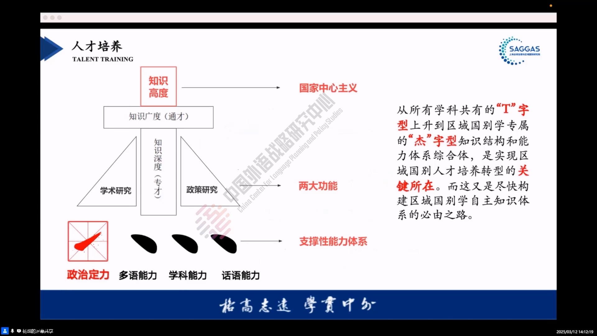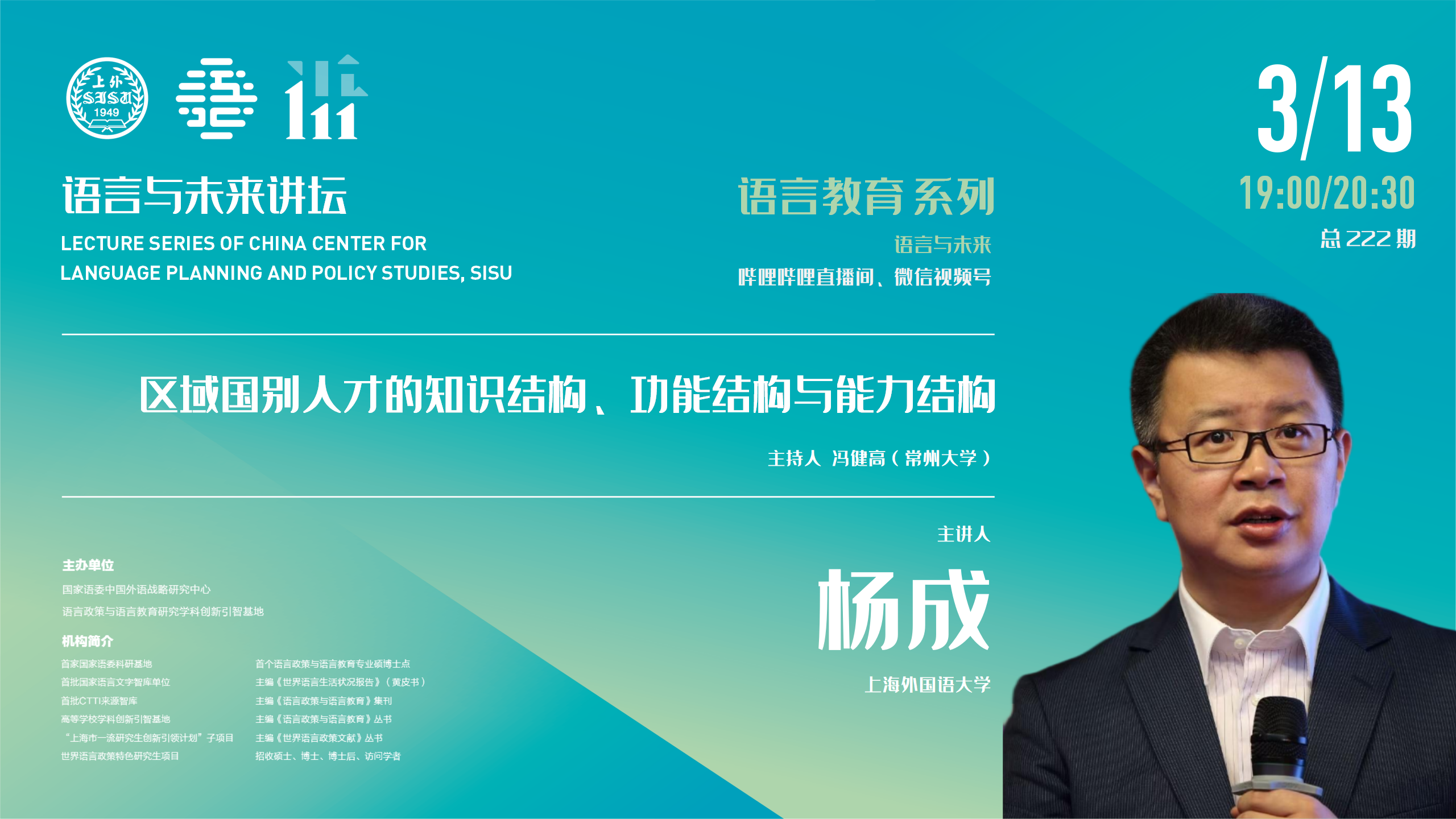 杨成于中国外语战略研究中心“语言与未来讲坛”谈区域国别人才的知识、功能与能力结构