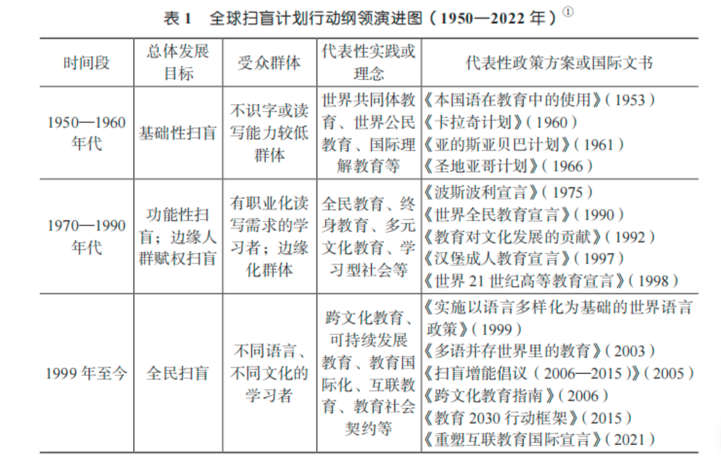 (一)“全球扫盲计划”与“青年和成人扫盲战略”