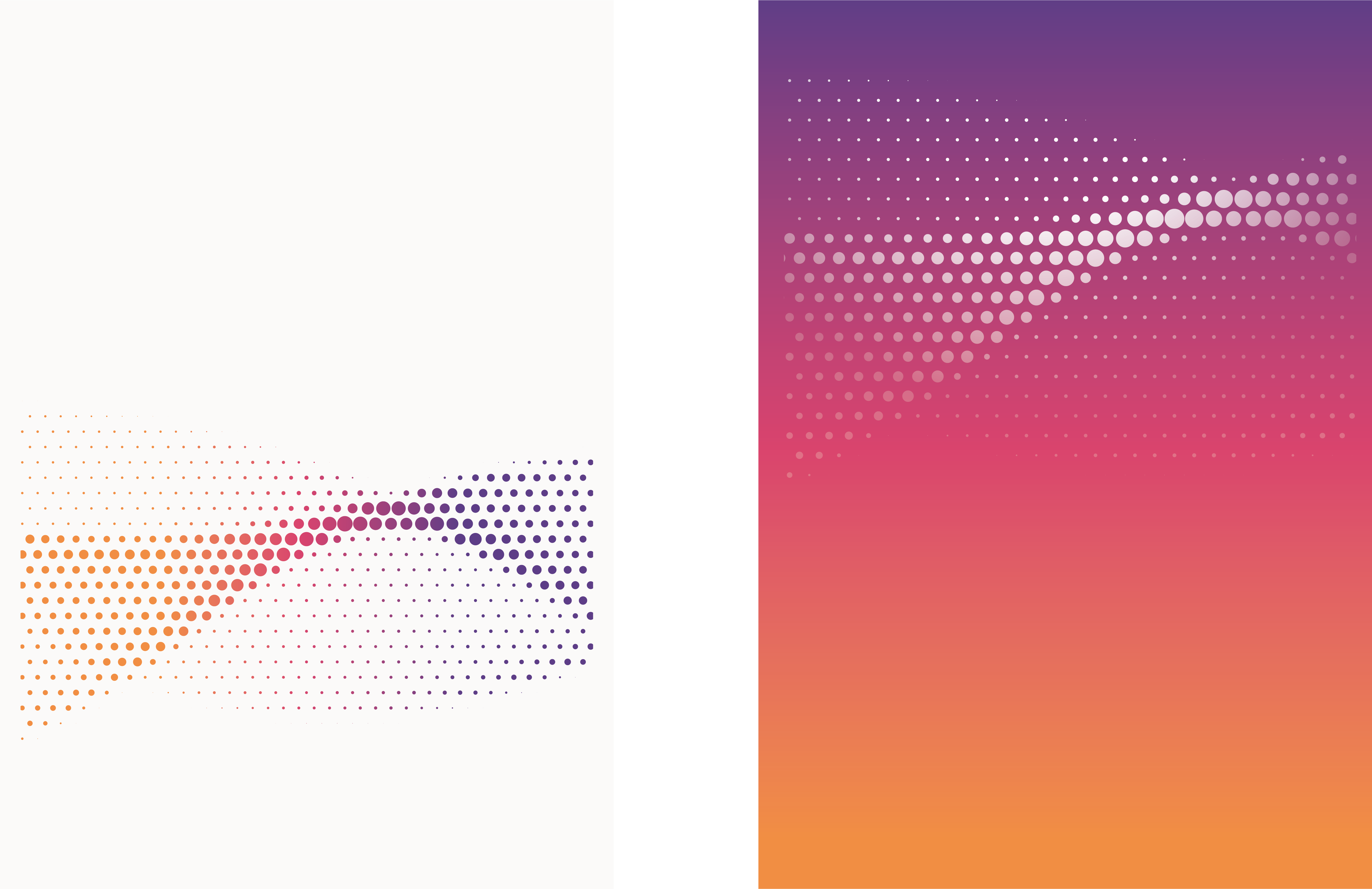 中心采用了多色过渡的色彩体系,所使用的颜色依次为紫色、玫红、黄橙、黑色,是朝霞遍布天空时的色彩,寓意语言和文化的丰富多样。同时,为了方便日常使用,强化视觉效果,还选取了深金色与浅灰色作为辅助色彩。