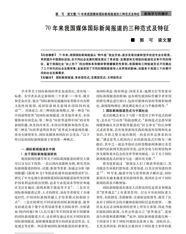 【关键词】国际新闻报道;革命型范式;发展型范式;文明型范式