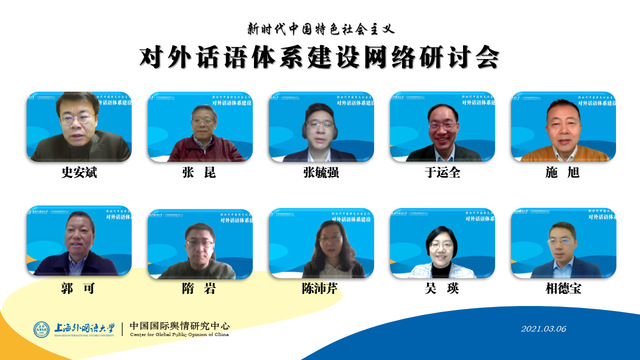 3月6日,由上海外国语大学中国国际舆情研究中心主办的新时代中国特色社会主义对外话语体系建设网络研讨会成功举行。专家学者们通过线上形式,从理论和实践多个方面论述了当前我国对外话语体系建设的现状、面临的挑战,并给出了策略性建议。