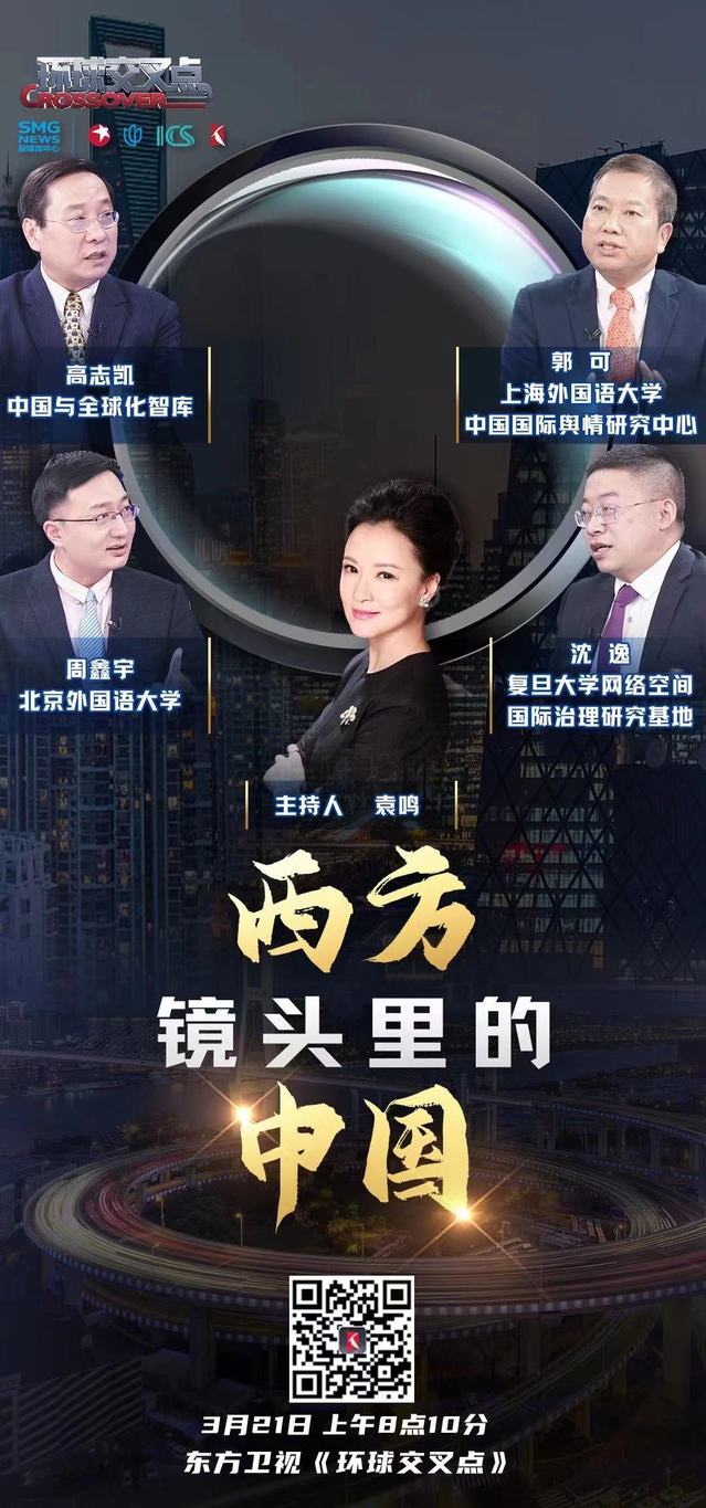 上外中国国际舆情研究中心主任郭可教授应邀参加东方卫视《环球交叉点》节目,就“西方镜头里的中国”与国内多名专家学者展开探讨。