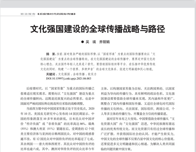 【关键词】文化强国 ;全球传播 ;软实力