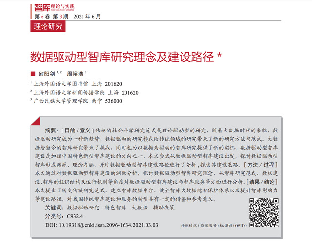 【关键词】数据驱动研究 特色智库 大数据 辅助决策