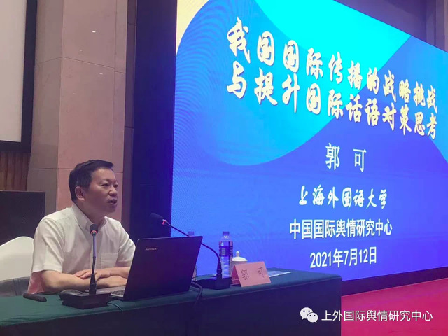 首先,结合中共中央政治局5月31日就加强我国国际传播能力建设进行第三十次集体学习及习近平总书记在主持学习时发表的讲话,郭可教授分享了学习体会,他认为,国际传播已经成为国家战略,要充分而深入地理解国际传播工作的重要性和必要性。