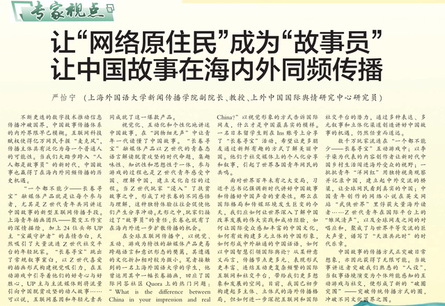 不断更迭的数字技术推动信息传播冲破国界,中国故事传播体系的内外界限早已模糊。互联网科技赋权使得亿万网民手握“麦克风”,传播主体具有泛化为每一个普通人的可能性。当我们大踏步跨入“人人都是故事员”的新时代,中国故事也赢得了在海内外同频传播的历史机遇。