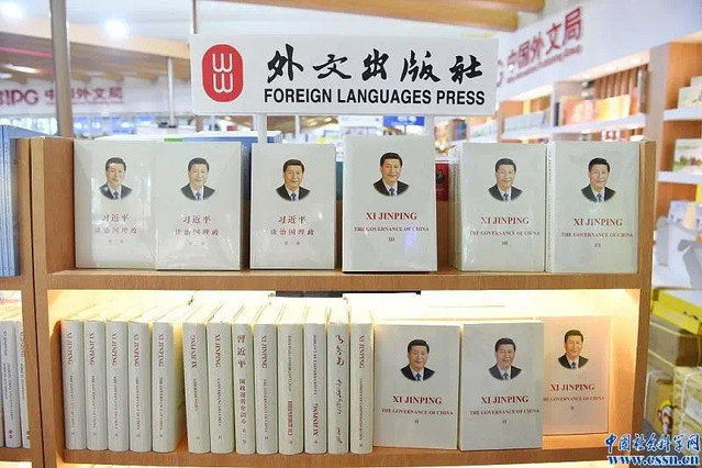 2020年8月13日,《习近平谈治国理政》第三卷中英文版在2020上海书展“对外出版馆”中国外文局展台上展出。图片来源:视觉中国