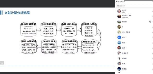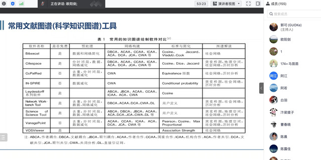 针对文献计量分析在论文写作中的实际操作问题,欧阳剑老师对比分析了Bibexcel、Citespace、CoPalRed、IN-SPIRE、Leydesdorff 等近十种常用文献图谱工具优劣,结合实例细致讲解了文献计量分析从样本数据获取到图谱结果解读的八大主要流程,并与学生就Citespace 在国内论文中的使用情况展开深入讨论。