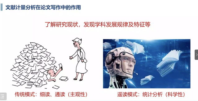 欧阳剑老师在讲座中强调运用文献计量分析进行论文写作时需要注重研究主题明确,文献资料准确全面,分析角度丰富,还需要在“综”的基础上“述”出自己的观点,在深度论述中挖掘出对学科未来发展的价值。同时,以传统文献阅读与计量文献阅读的差异对比为切入口,介绍文献计量分析法能的重要功能,不仅能从已经发表的文献中提取学科的发展进程,还能捕捉知识之间网络、结构、互动、交叉、演化等等内容。