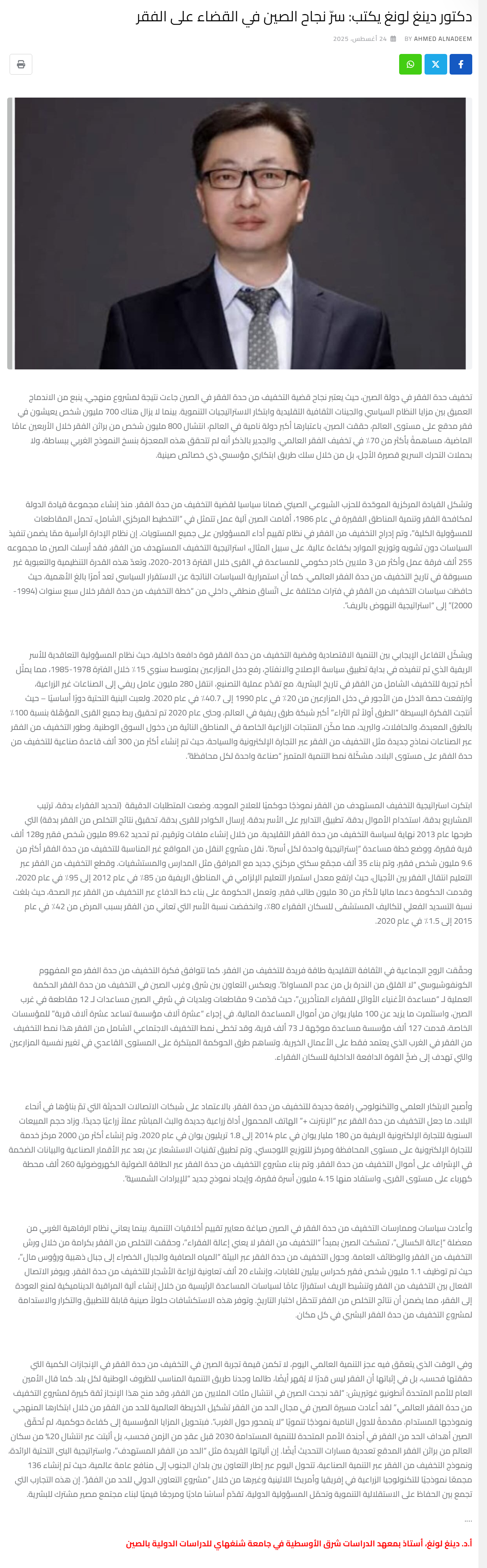 日,上外中东研究所丁隆教授在埃及能源网发表评论文章“中国脱贫经验”,全文如下: