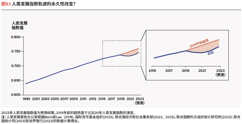 此后,全球人类发展指数在2023年预测将反弹至历史新高(图S.1)。全球人类发展指数的所有组成部分预测将超过2019年前的水平。
