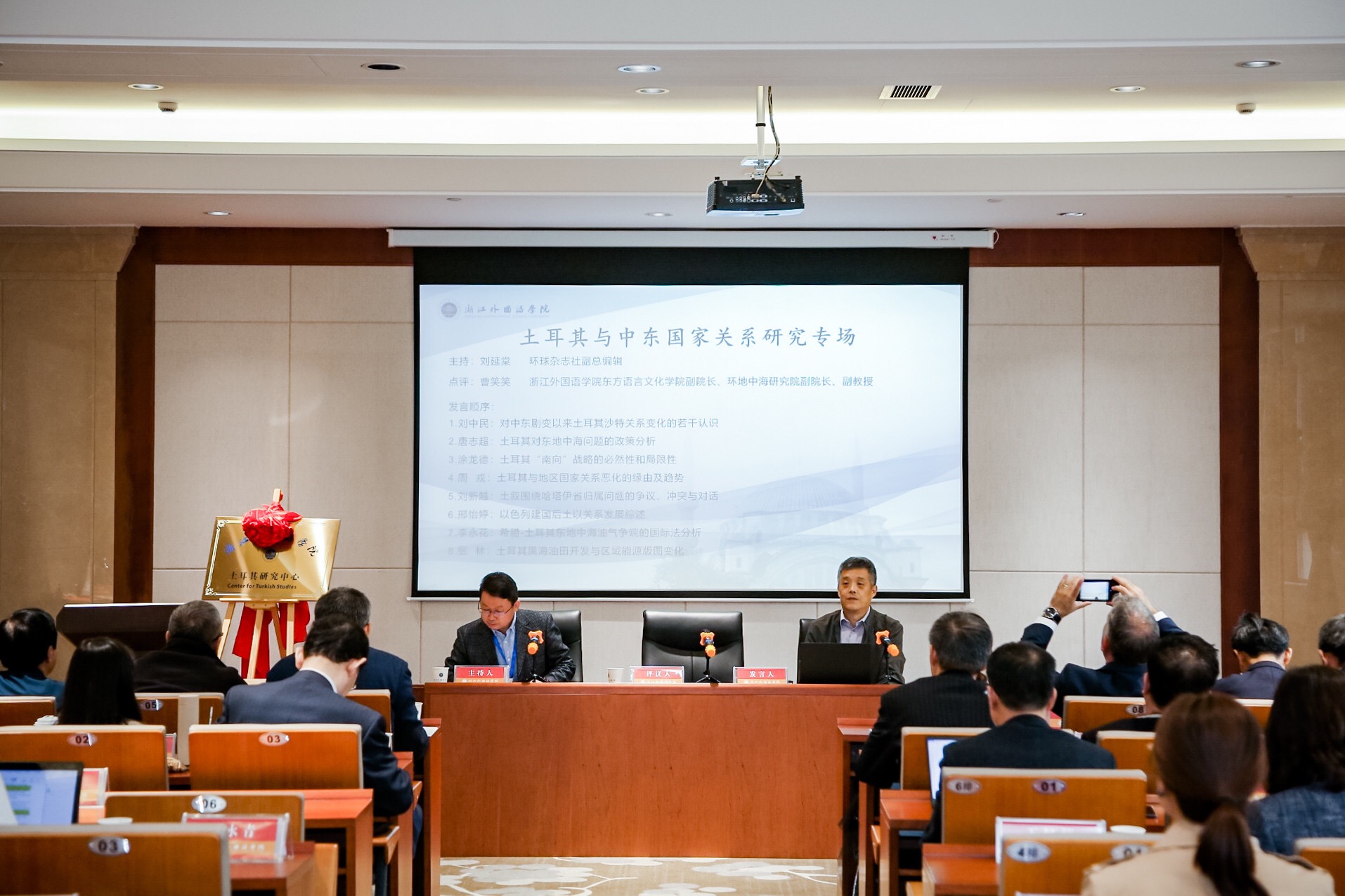 在开幕式上,专家学者们共同见证了土耳其研究中心揭牌仪式。随后,与会专家、学者围绕土耳其内政、土耳其与中东国家关系、土耳其与大国关系、等主题分三场展开专题研讨。