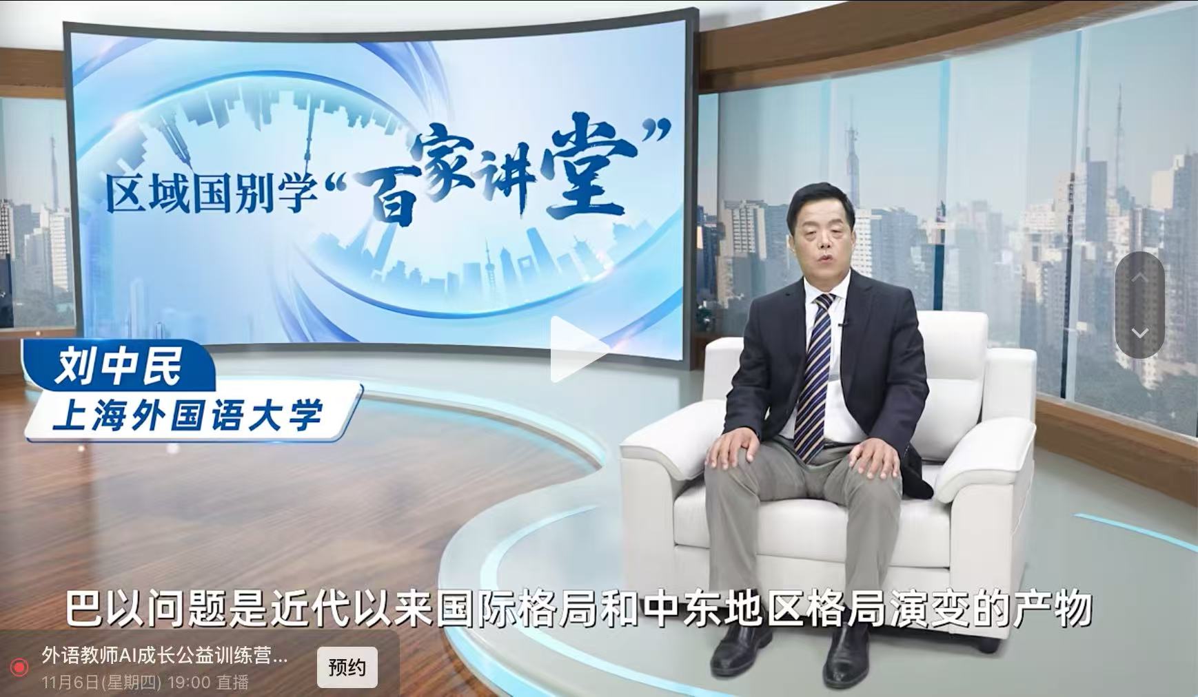 上外中东研究所刘中民教授应邀在2025年8月参加了“区域国别学百家讲堂”课程的录制,他讲授的专题课程为“国际与地区格局演进中的巴以问题”。