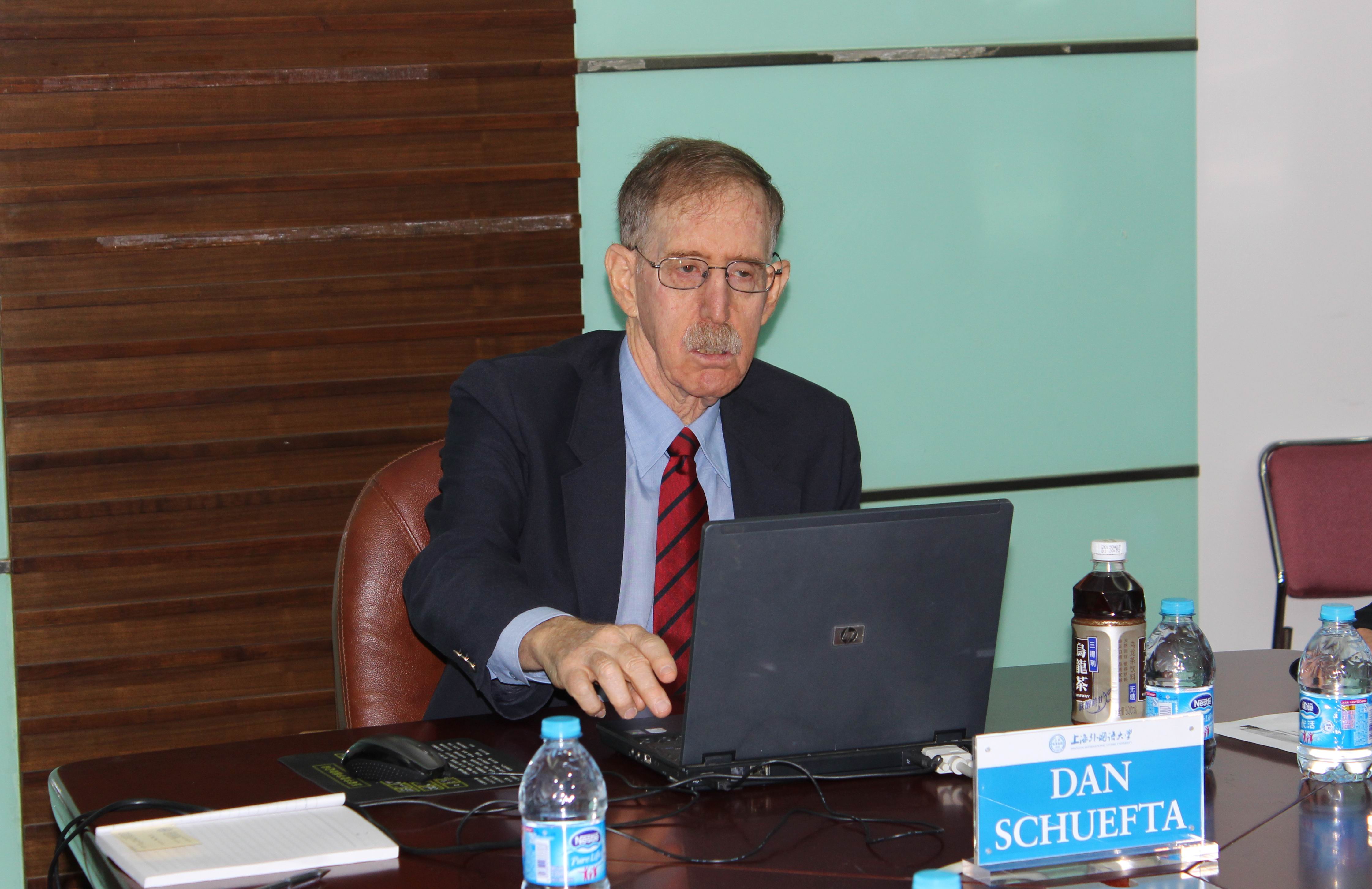 20151013日,以色列海法大学国家安全研究中心主任Dan Schueftan教授一行四人访问上外中东所,并以“以色列安全局势的变动及应对策略”为题作专题讲座。讲座由中东所孙德刚研究员主持,以色列研究中心主任杨阳副教授,中东所刘中民教授、丁俊教授、钮松副研究员、余泳副研究员、赵军副教授包澄章助理研究员以及上外其他院系师生二十余人出席讲座。