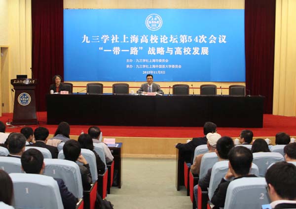 2015年11月5日,九三学社上海高校论坛第54次会议在上海外国语大学召开,会议主题为“‘一带一路’战略与高校发展”。中东研究所名誉所长朱威烈教授应邀为论坛作专题报告,介绍我国“一带一路”战略的有关情况。