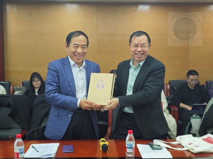 (林丰民教授向丁俊教授赠送《悬诗疏评》)