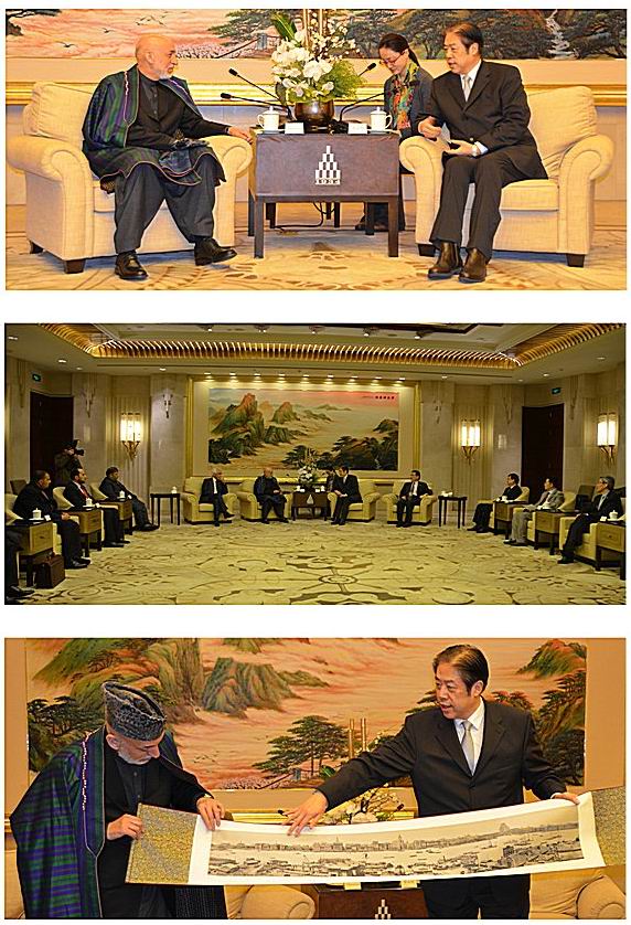 28日中午,上海市政协主席吴志明在衡山宾馆会见了卡尔扎伊,并介绍了上海经济社会发展情况和上海市政协推进协商民主制度建设的履职实践。卡尔扎伊表示,上海在中国经济发展中扮演着重要角色,改革开放成果令世界瞩目。希望通过此访,进一步加强友好往来,在基础设施建设、新能源利用等领域深入务实合作。