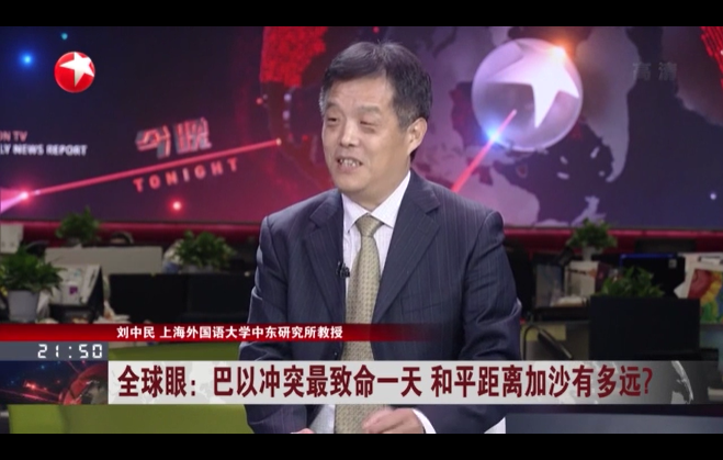 日,上外中东研究所刘中民教授就巴以冲突接受东方卫视《今晚·全球眼》节目采访。