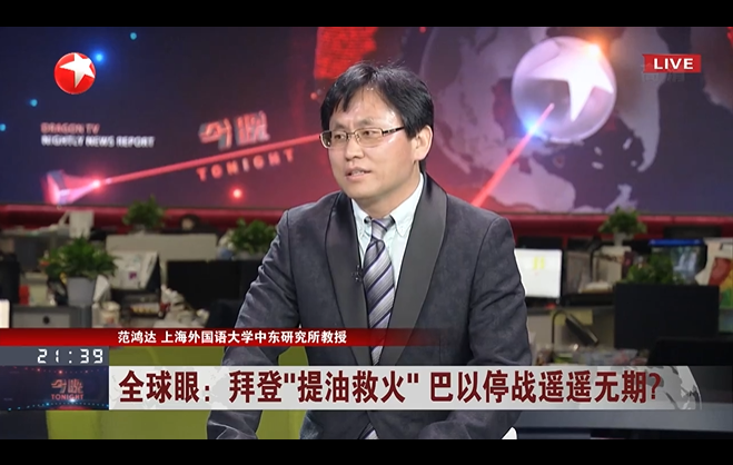 日,上外中东研究所范鸿达教授应邀参加东方卫视《今晚》节目,对巴以冲突和美国相关立场和举措进行分析。