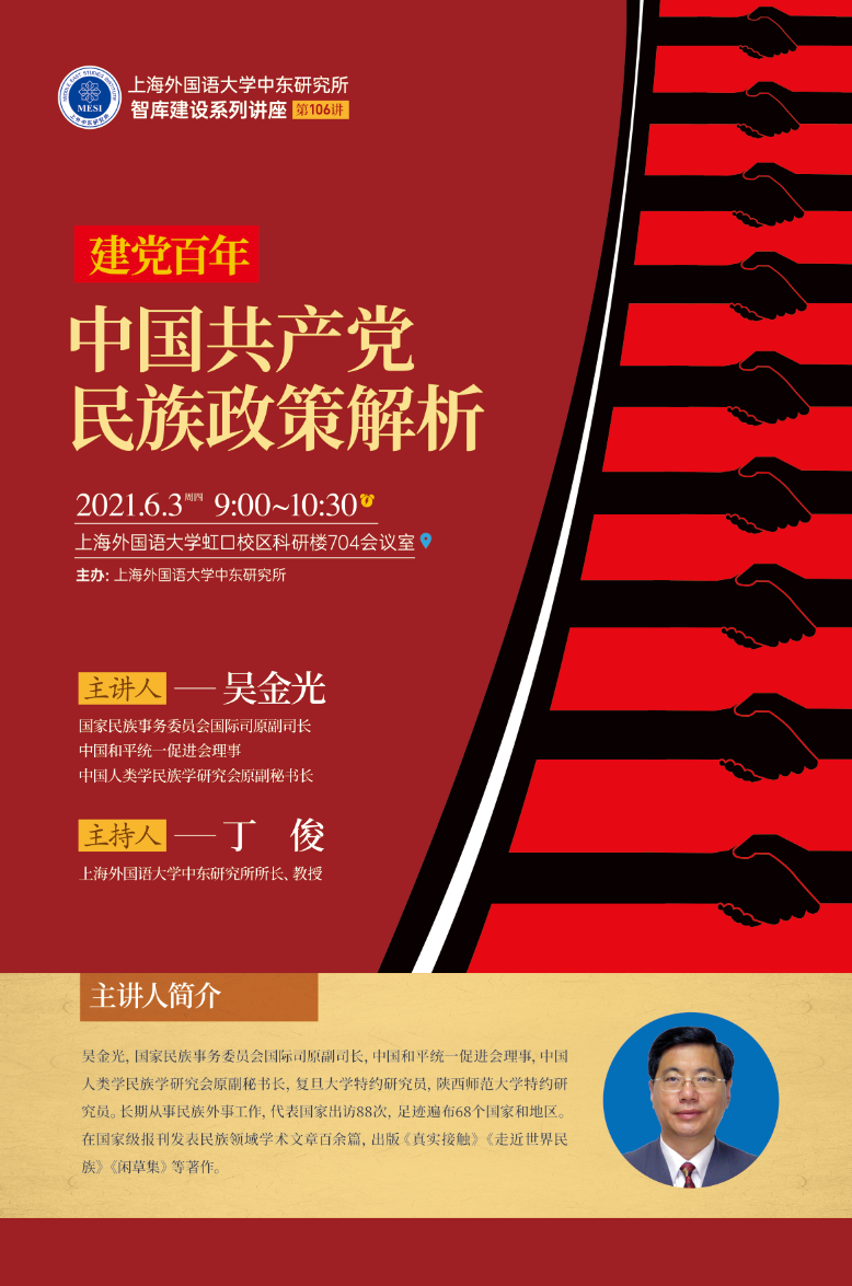 主讲人:吴金光,国家民族事务委员会国际司原副司长,中国和平统一促进会理事,中国人类学民族学研究会原副秘书长