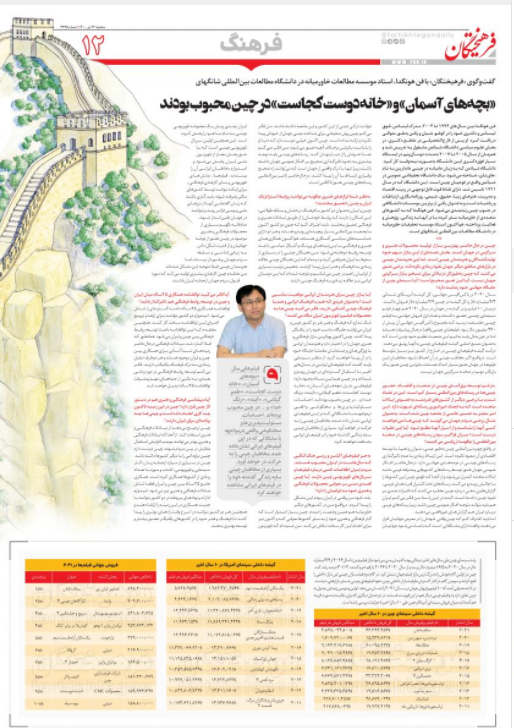 2021年7月13日,上外中东研究所范鸿达教授接受伊朗著名报纸farhikhtegandaily专访(见farhikhtegandaily2021年7月13日第12版),主要谈论中国的电影、对外传播、与伊朗的文化交流、以及中伊25年全面合作协议对文化交流的可能影响等问题。全文如下: