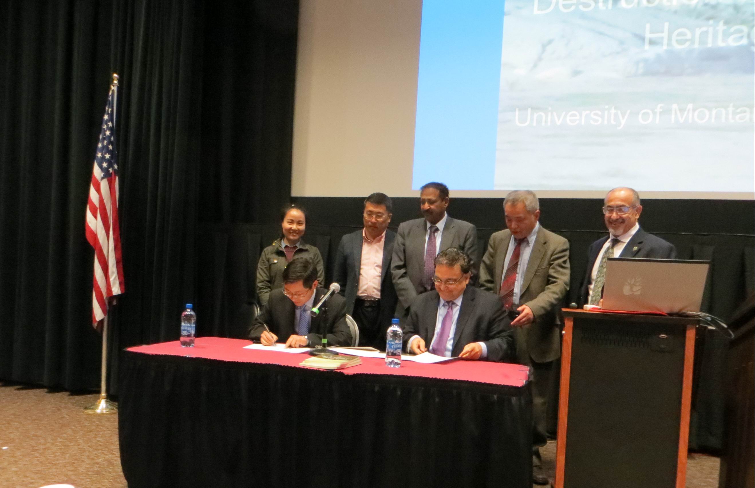 参会期间,中东研究所代表团与蒙大拿大学中亚与西南亚研究中心负责人进行了广泛接触,并就双方在校际合作备忘录框架下加强学术交流、联合举办会议、互访和学术期刊合作等议题达成广泛共识。325日,在现场100多位专家、学者和听众的见证下,上海外国语大学中东研究所副所长孙德刚研究员和蒙大拿大学中亚与西南亚研究中心主任Mehrdad Kia走上主席台、发表讲话,并代表两家研究机构签订了《上海外国语大学中东研究所与蒙大拿大学中亚与西南亚研究中心合作协定》。上海外国语大学校友曹震教授主持签字仪式,并为中东研究所此次联合举办会议提供了大力协助。