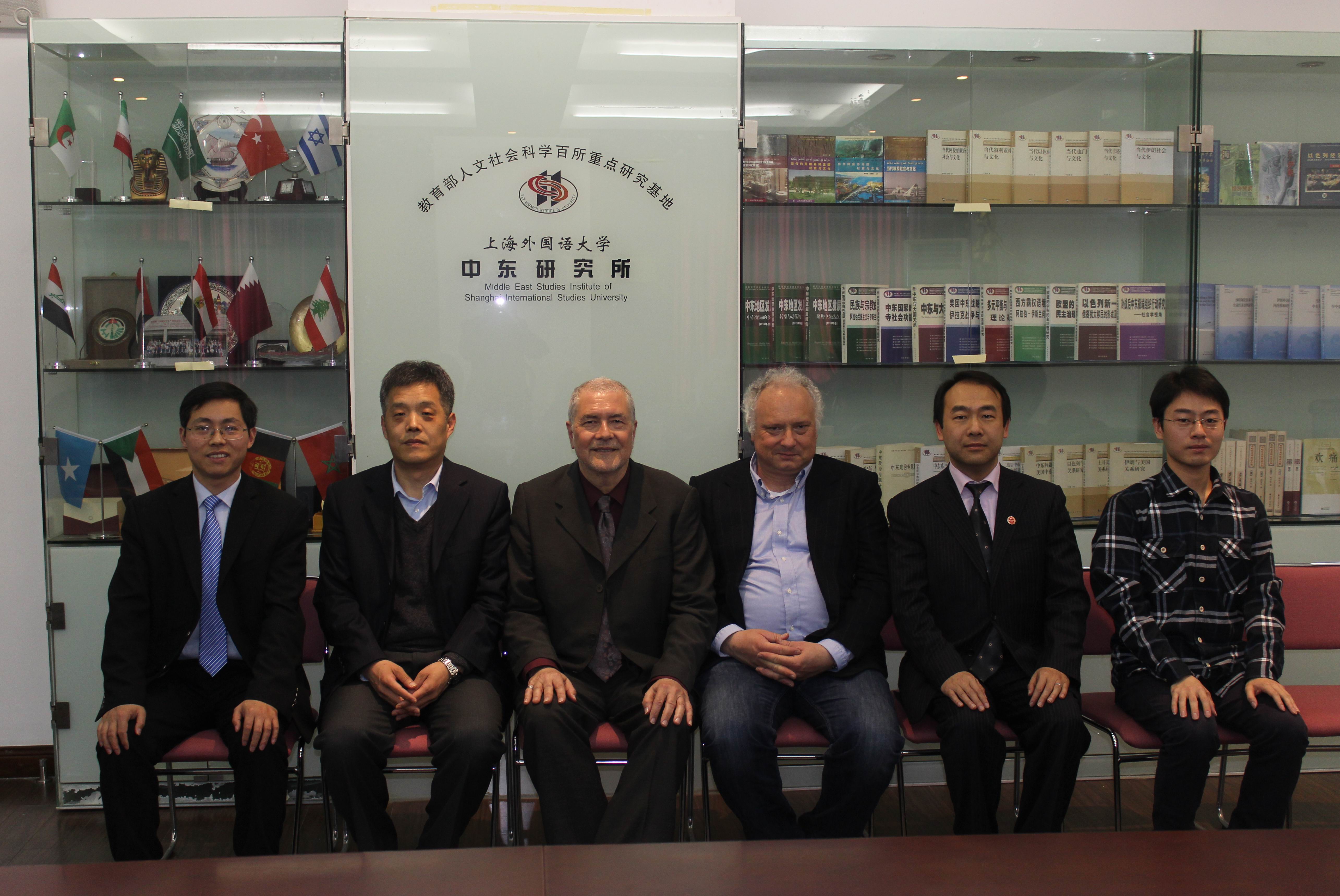 上外东方语学院院长程彤教授,中东所余泳、潜旭明、包澄章、赵军参加会见。
