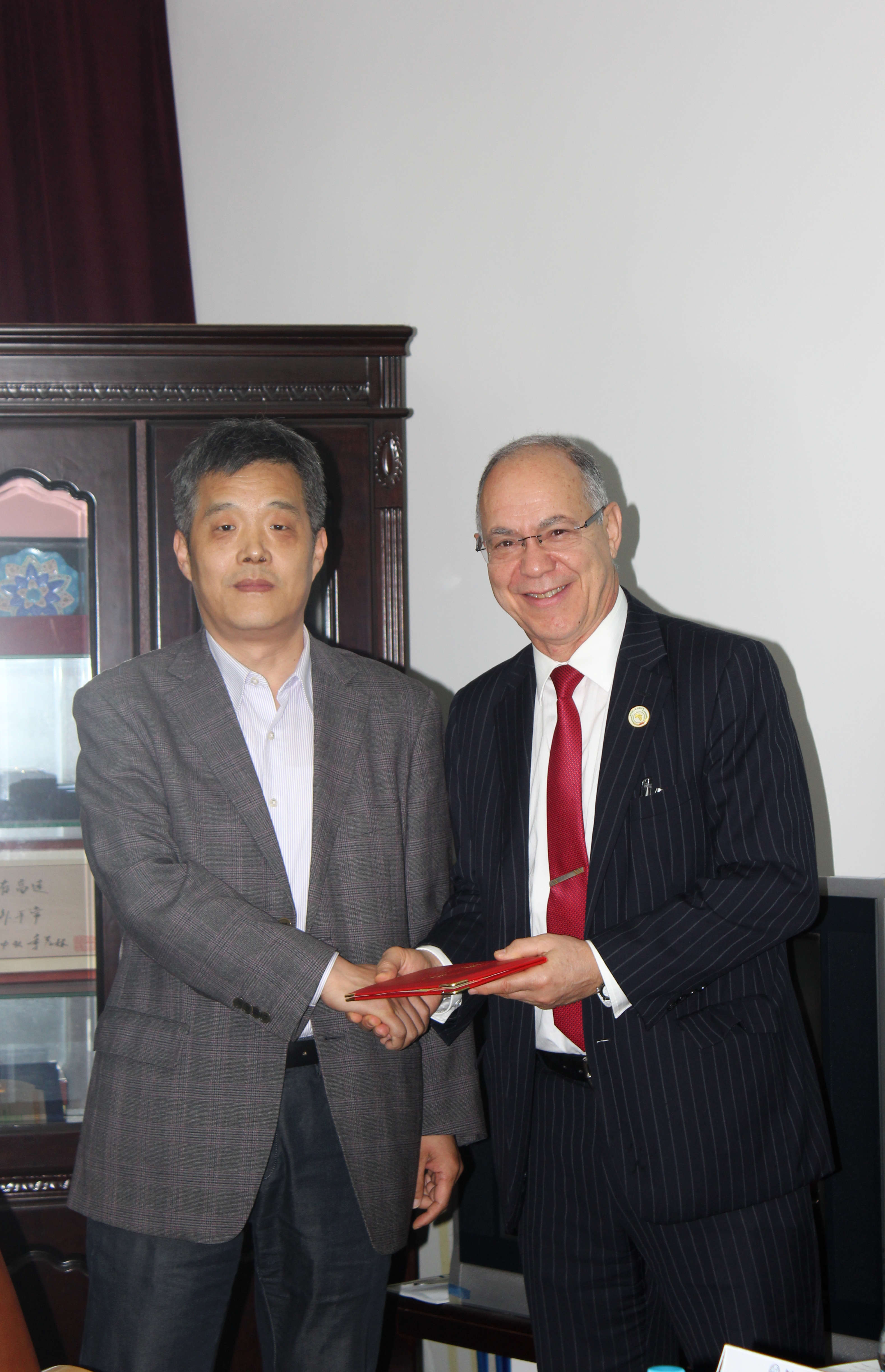 2016年4月20日上午,中东研究所举行国际顾问聘书颁发仪式。中东所所长刘中民教授为叶海亚·祖必和(Yahia Zoubir)教授颁发中东所国际顾问聘书。