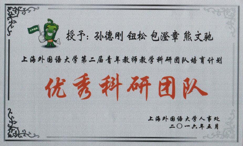 2016年5月11日,上海外国语大学第三届“青年教师教学科研团队培育计划”启动暨第二届优秀团队表彰大会在会议中心第一报告厅举行。中东所孙德刚领衔建设“新时期中阿新型战略伙伴关系研究”团队荣获“上海外国语大学第二届青年教师教学科研团队培育计划优秀科研团队”称号,团队指导为刘中民教授,团队成员包括中东所孙德刚、钮松、包澄章和国际关系与公共事务学院熊文驰副研究员,。孙德刚研究员作为团队核心代表交流发言。