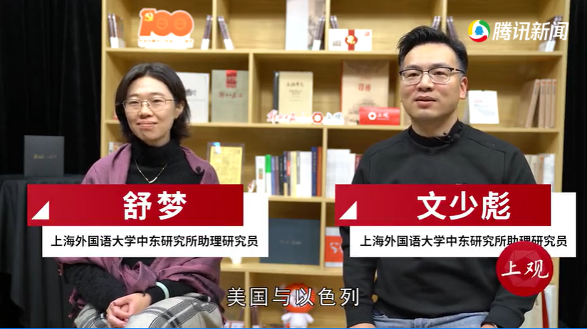 2021年11月17日,上外中东研究所舒梦助理研究员和文少彪助理研究员就阿联酋、巴林、以色列和美国在红海举行联合军演接受上观新闻大局观栏目视频采访。