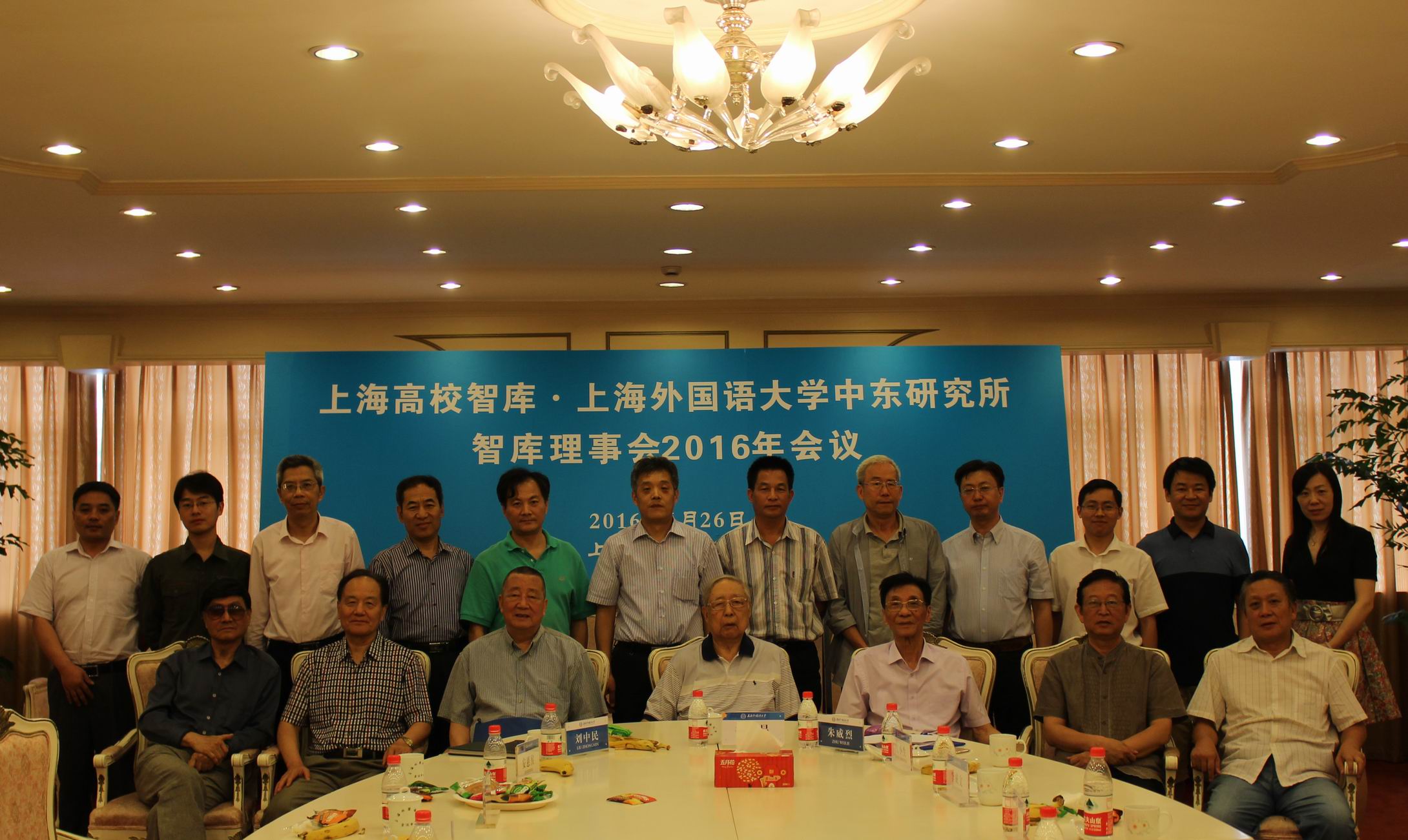 上海外国语大学中东研究所智库理事会成立于2014年1月12日,现共有校聘理事16名,此次召开的是其第三次年会,出席会议的有外交部前副部长杨福昌、中国中东问题特使宫小生、中国前驻中东五国大使安惠侯、中国前中东问题特使吴思科、中国前驻沙特大使李成文、新华社前中东总分社社长吴毅宏、新华社世界问题研究中心顾正龙、上海电气集团叶水林、中国社科院西亚非洲所王京烈、北京外国语大学扎耶德中心主任薛庆国、对外经济贸易大学外国语学院副院长丁隆、《文汇报》国际新闻编辑唐见端以及中东研究所所长刘中民、名誉所长朱威烈、副所长孙德刚和其他部分研究人员。
