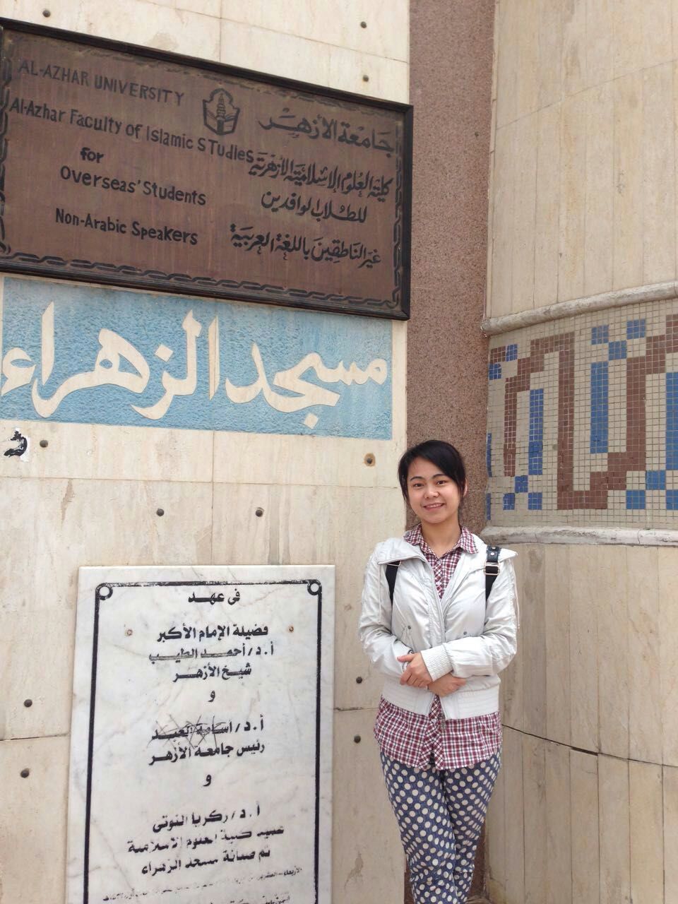 来到爱资哈尔大学,我心中感慨万千。众所周知,爱资哈尔大学是世界上最古老的高等学府之一,爱资哈尔一词在阿拉伯语中是“鲜艳的、明亮的”意思,是扎海拉一词的阳性名词,扎海拉是穆罕默德的女儿法蒂玛的外号。爱资哈尔大学培养了大批穆斯林学者,我国阿拉伯语界的泰斗马坚先生、纳忠先生、刘麟瑞先生等早年都曾在这里攻读过阿拉伯语和伊斯兰文化,爱资哈尔已经被公认为是伊斯兰学术研究的中心。跟在阿拉伯语泰斗的脚步后面,我深感荣幸,对阿拉伯—伊斯兰政治、文化、社会的研究将是我毕生的追求和方向。
