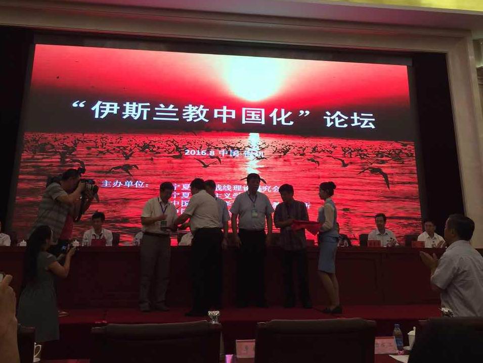 2016年8月18~19日,由中国社会科学院世界宗教研究所、中国宗教学会、宁夏统一战线理论研究会、宁夏社会主义学院联合主办的“伊斯兰教中国化”论坛在银川举行。宁夏回族自治区党委、政府及中央统战部、国家宗教局有关领导出席论坛。来自中国社会科学院、北京大学、兰州大学、中央民族大学、上海外国语大学、上海师范大学、华东师范大学、上海社会科学院、陕西师范大学、宁夏大学、西北民族大学等单位的50余位专家学者参加了论坛。会议就“伊斯兰教与中国化理论探索”、“伊斯兰教中国化实践探索”、“伊斯兰教与中国文化”、“伊斯兰与宗教中国化”等议题进行了深入研讨。
