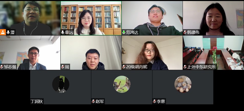 2022年1月7日,中东研究所举行2020级硕士研究生学位论文开题答辩,此次答辩以线上线下相结合的形式举行。李俊峰、丁润秋、Azamkhon Amrokhoni、鲜甄、胡丹妮、周俊、金世元、卫静怡、张怡静、徐张敏、欧阳玲等11位硕士研究生,先后就各自学位论文的选题意义、国内外研究现状、研究内容、思路和拟采用的研究理论与方法进行了汇报。