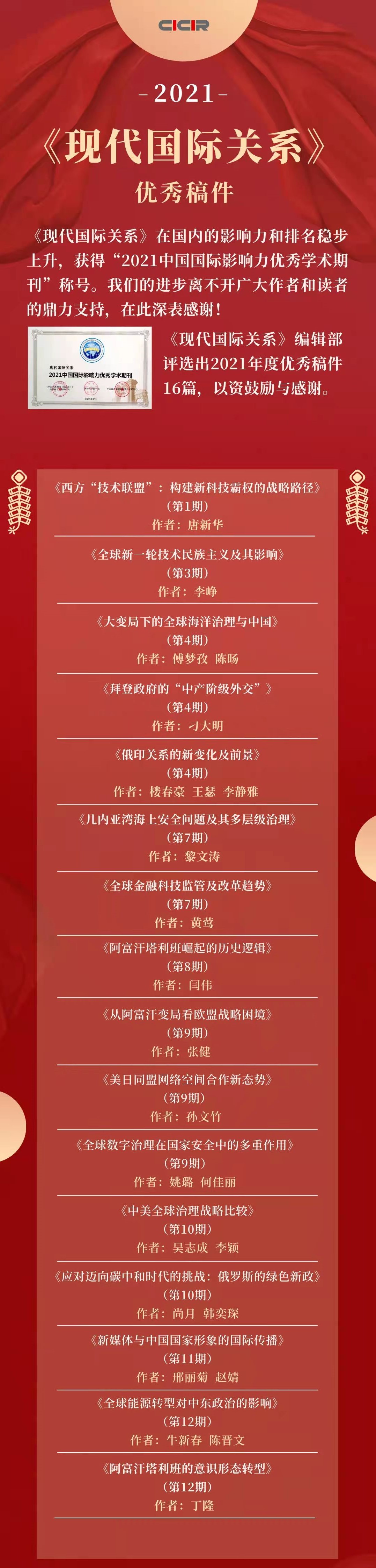 丁隆教授论文被评为《现代国际关系》年度优秀稿件