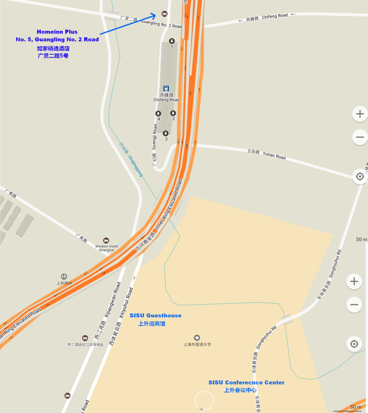 No. 189, Tiyuhui Road (W), Hongkou District, Shanghai. (Adjacent to the West Gate of SISU Hongkou Campus)