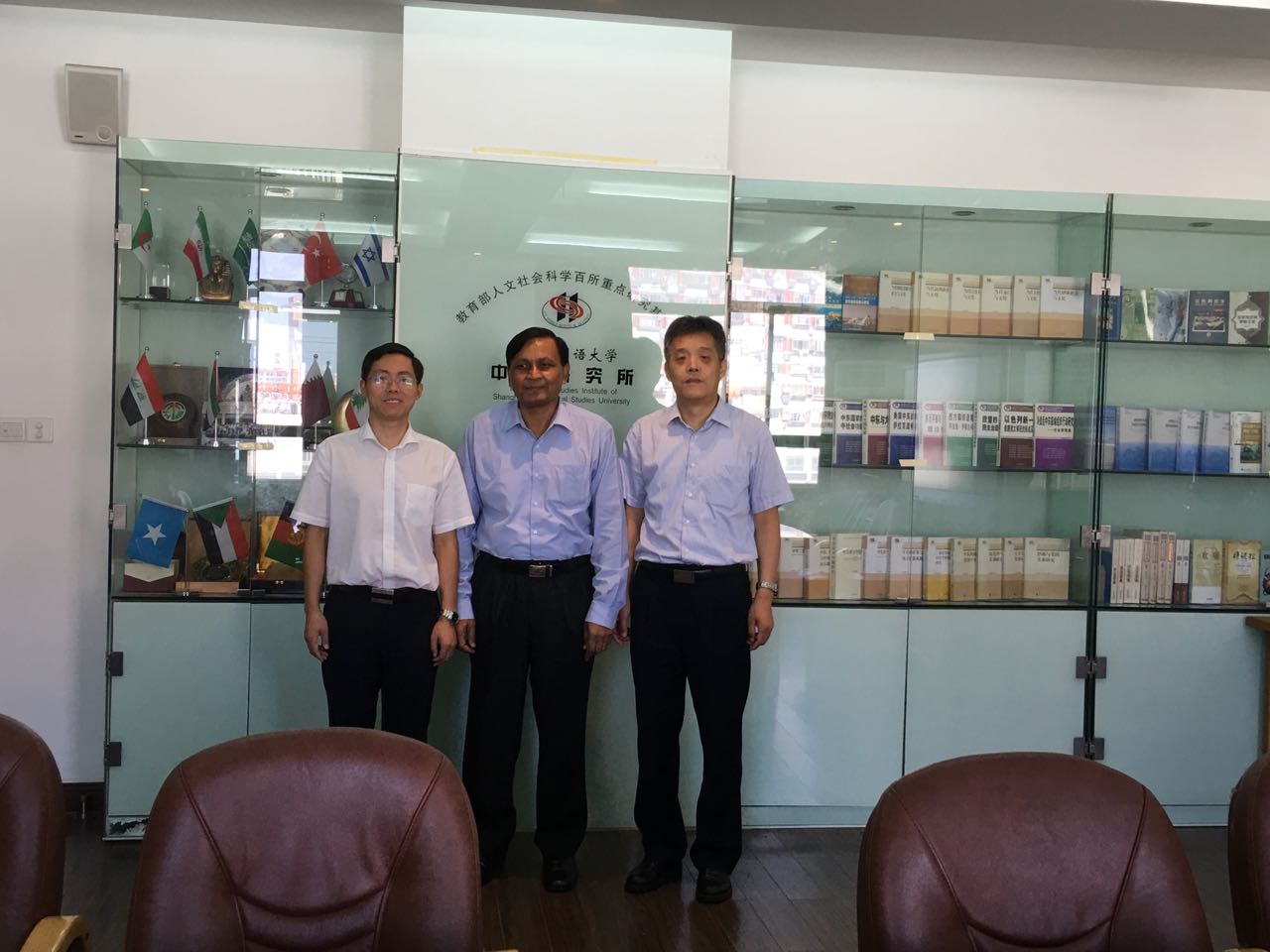 刘中民所长(右)和孙德刚副所长(左)同印度尼赫鲁大学西亚研究中心主任Mahendra Pratap Rana教授(中)合影