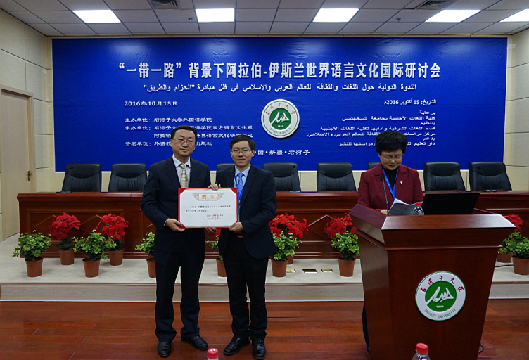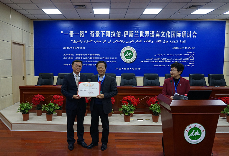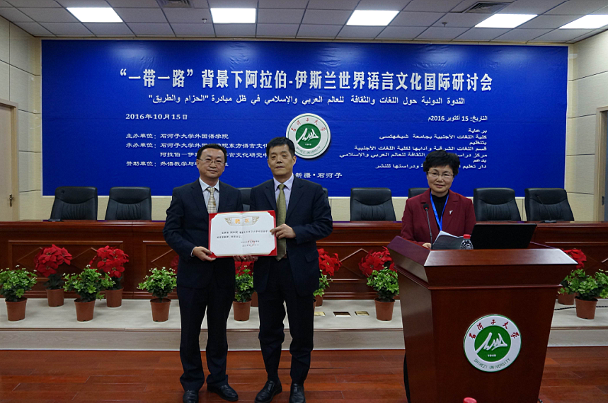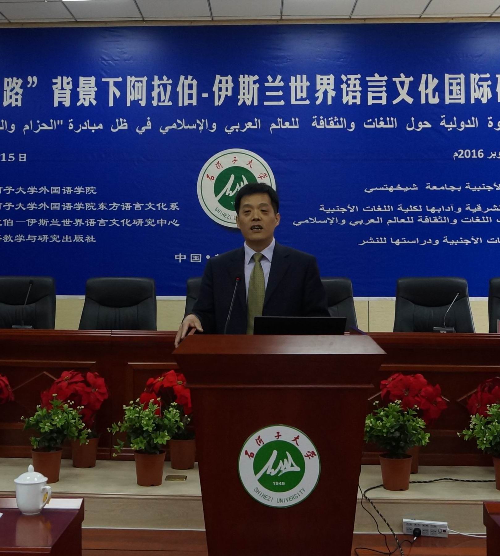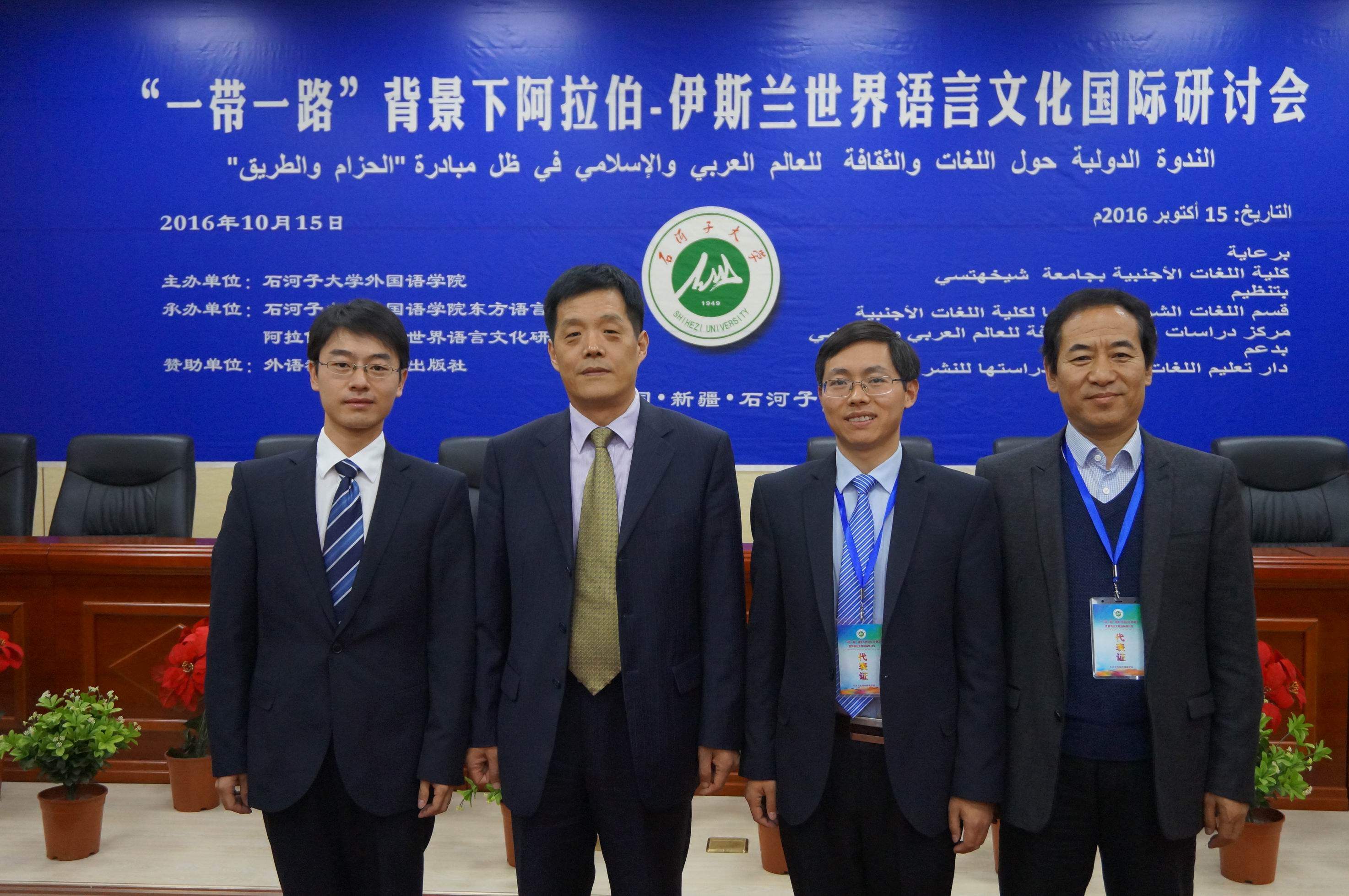 2016年10月15日,“一带一路”背景下阿拉伯—伊斯兰世界语言文化国际研讨会在新疆石河子大学举行。此次研讨会由石河子大学外国语学院主办,石河子大学外国语学院东方语言文化系、阿拉伯—伊斯兰世界语言文化研究中心承办。来自石河子大学、上海外国语大学、北京大学、北京语言大学、对外经济贸易大学、北京第二外国语学院、宁夏大学、西北民族大学等国内高校、科研机构和阿拉伯国家的数十位专家学者出席研讨会。上外中东研究所所长刘中民教授、副所长孙德刚研究员、丁俊教授、包澄章副研究员出席研讨会,并同与会专家学者围绕“一带一路”与高校外语学科建设、中阿关系、中国中东外交、阿拉伯语教学与研究等议题展开了深入研讨。