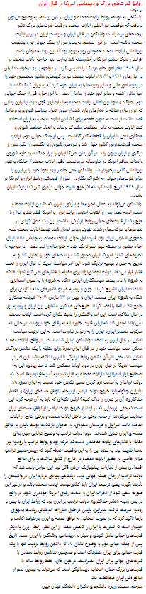 2022年3月6日,上外中东研究所范鸿达教授在伊朗Etemaad报发表评论文章《大国关系与美国的对伊朗外交》(见Etemaad 2022年3月6日第1、6版),全文如下: