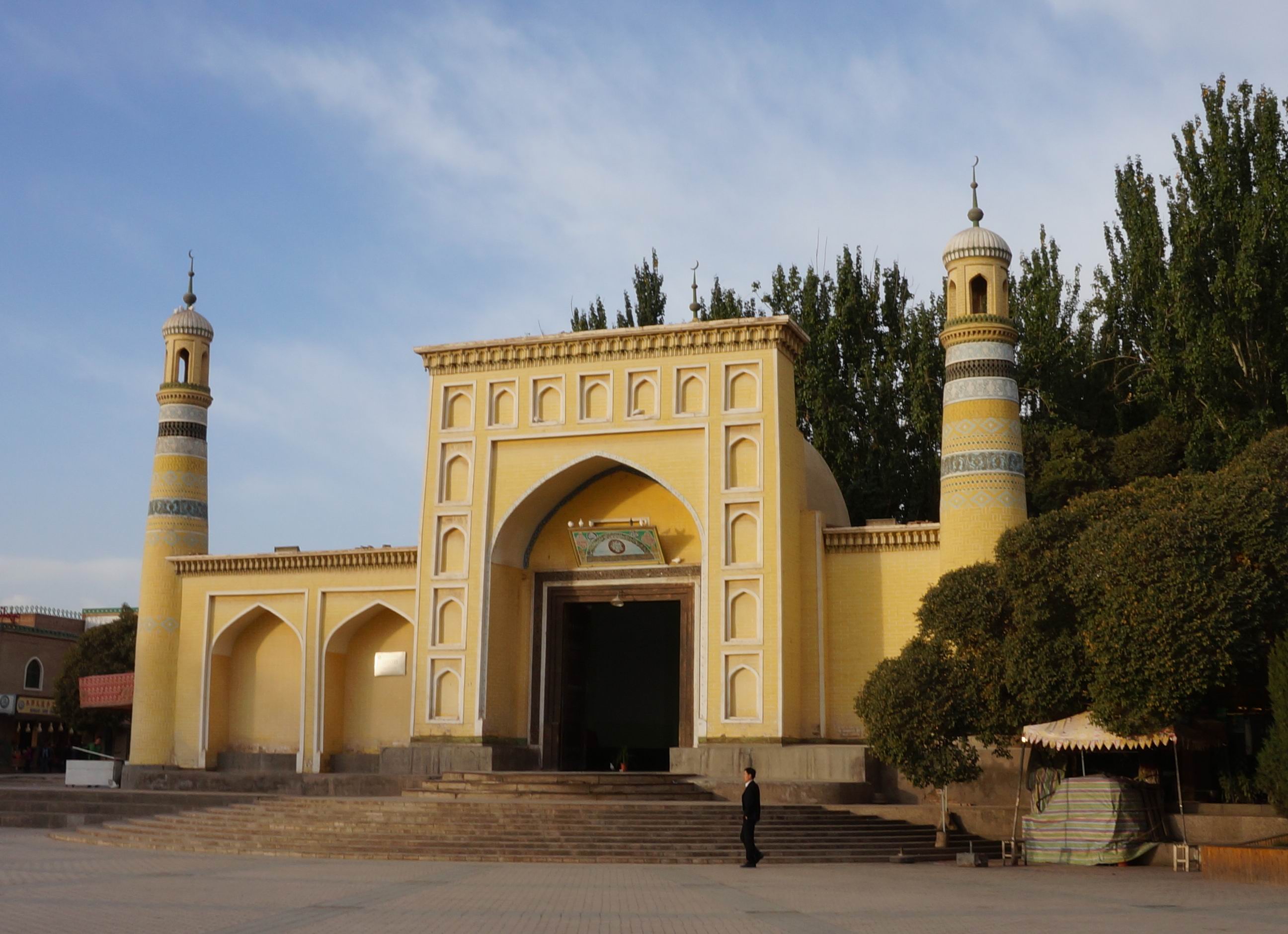 艾提尕尔清真寺始建于公元1442年,后历经多次修建和扩建,占地1.68万平方米,是当前新疆地区规模最大的清真寺。