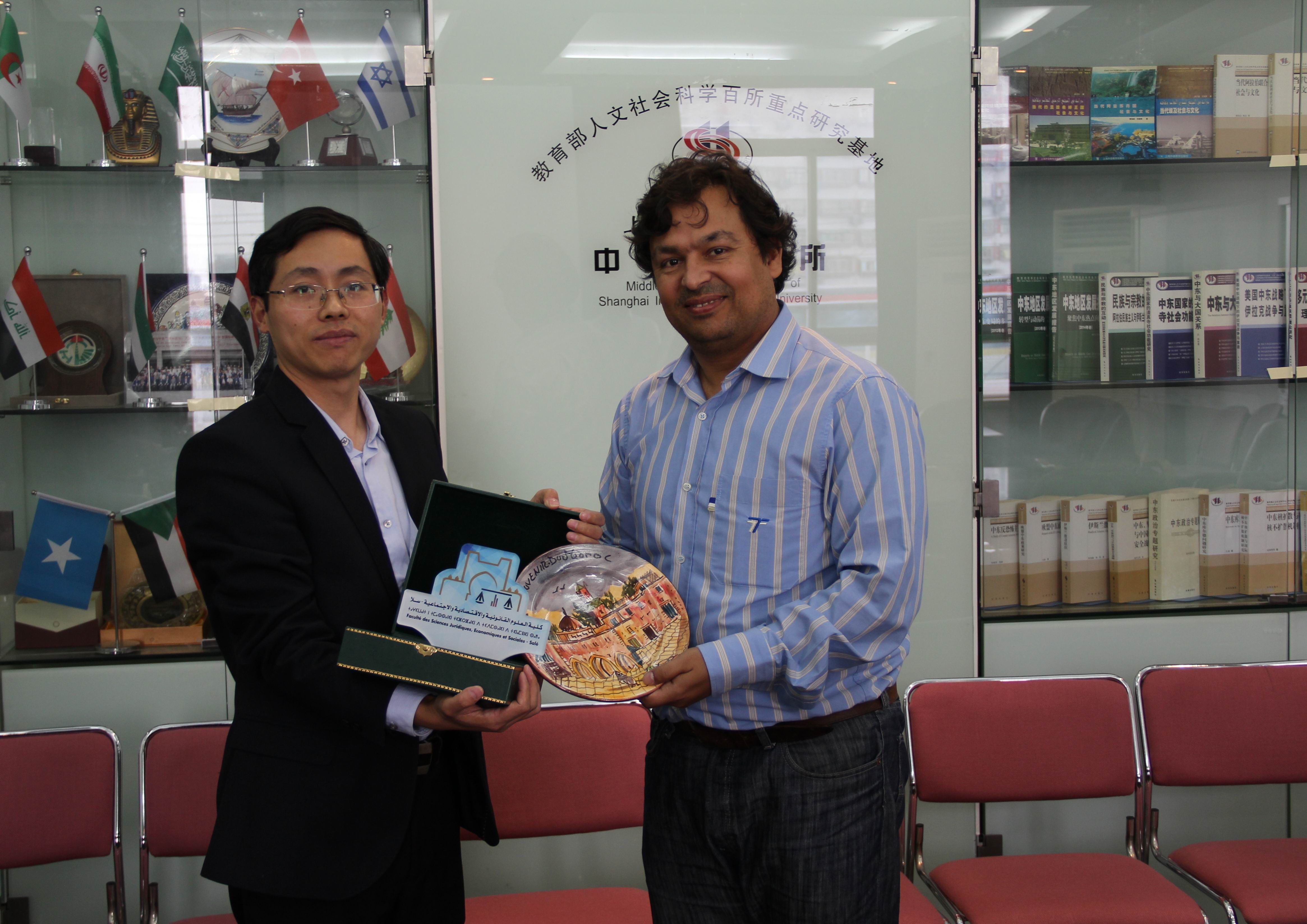 2016年10月24日下午,摩洛哥穆罕默德五世大学经济与社会科学学院副院长穆斯塔法·马赫拉非(Mustapha Machrafi)教授一行四人访问上外中东研究所,并同中东所研究人员举行会谈。中东所潜旭明等出席会见。