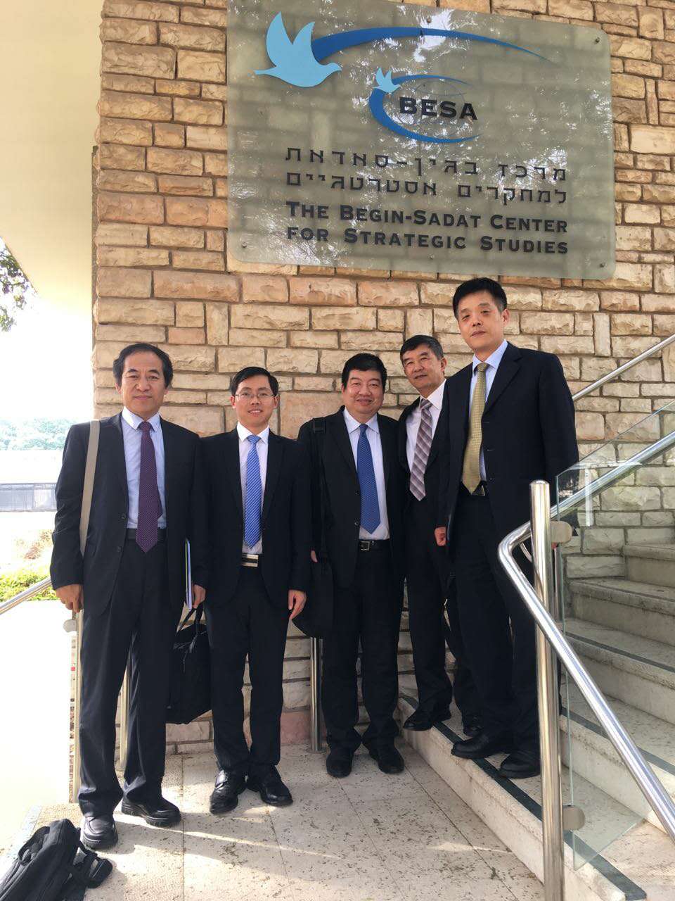 2016年11月12日,上外中东研究所代表团刘中民教授、孙德刚研究员、汪波教授、丁俊教授以及东方语学院希伯来语系主任杨阳副教授一行五人访问以色列巴伊兰大学,并会见了巴伊兰大学贝京—萨达特战略研究中心(The Begin-Sadat Center for Strategic Studies)创始主任埃夫拉伊姆•因巴尔(Efraim Inbar)教授等中心研究人员。