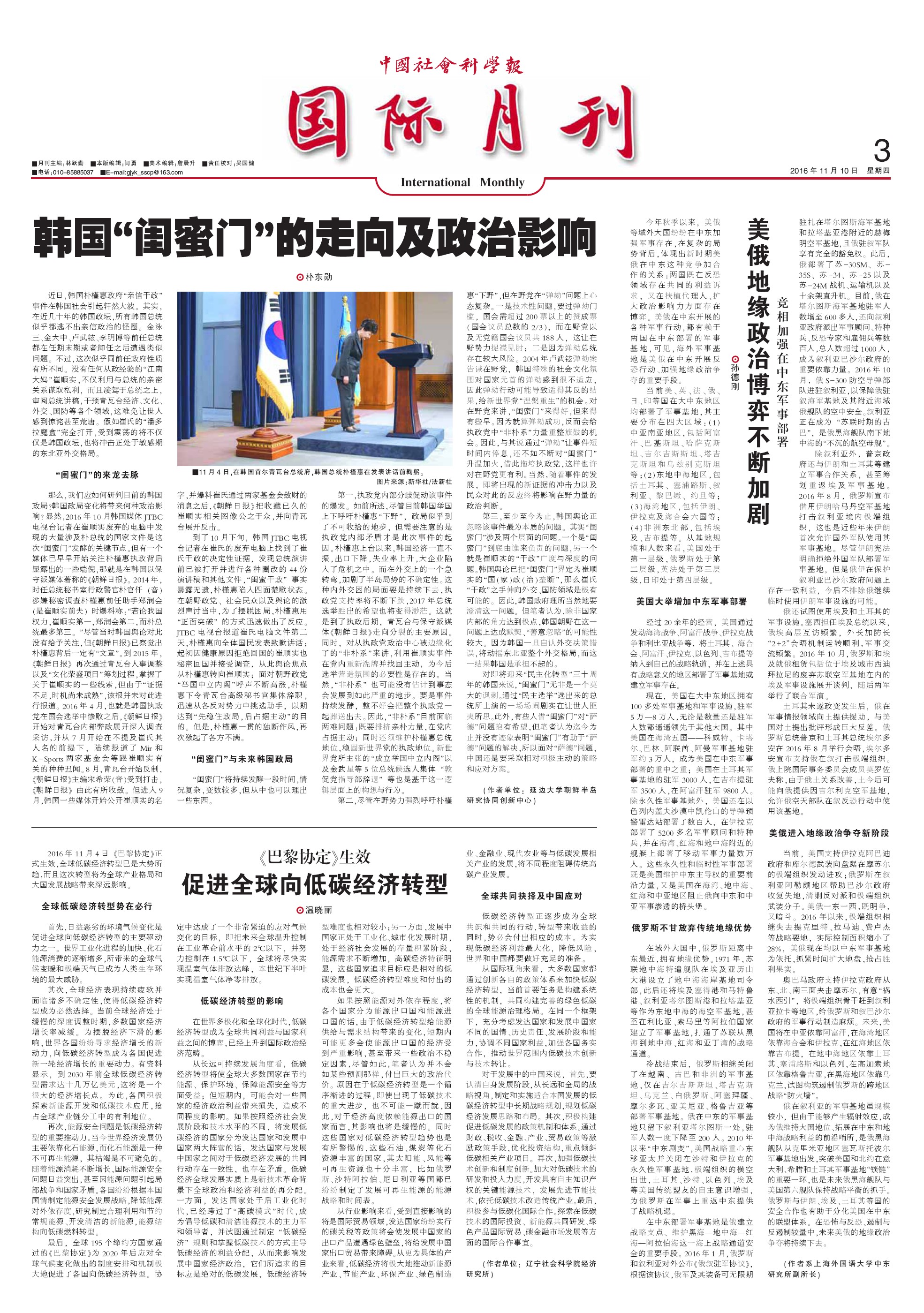 2016年11月10日,中东研究所孙德刚研究员在《中国社会科学报》发表评论文章《美俄地缘政治博弈不断加剧》(见《中国社会科学报》2016年11月10日第3版),全文如下: