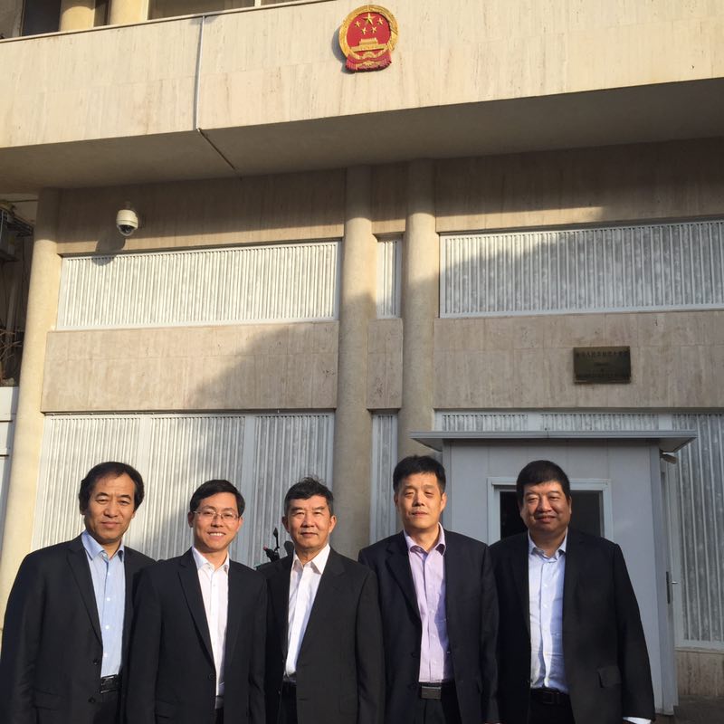 2016年11月14日下午,应中国驻以色列大使詹永新的邀请,上外中东研究所代表团刘中民教授、孙德刚研究员、汪波教授、丁俊教授和东方语学院希伯来语系主任杨阳副教授一行五人访问中国驻以色列大使馆。