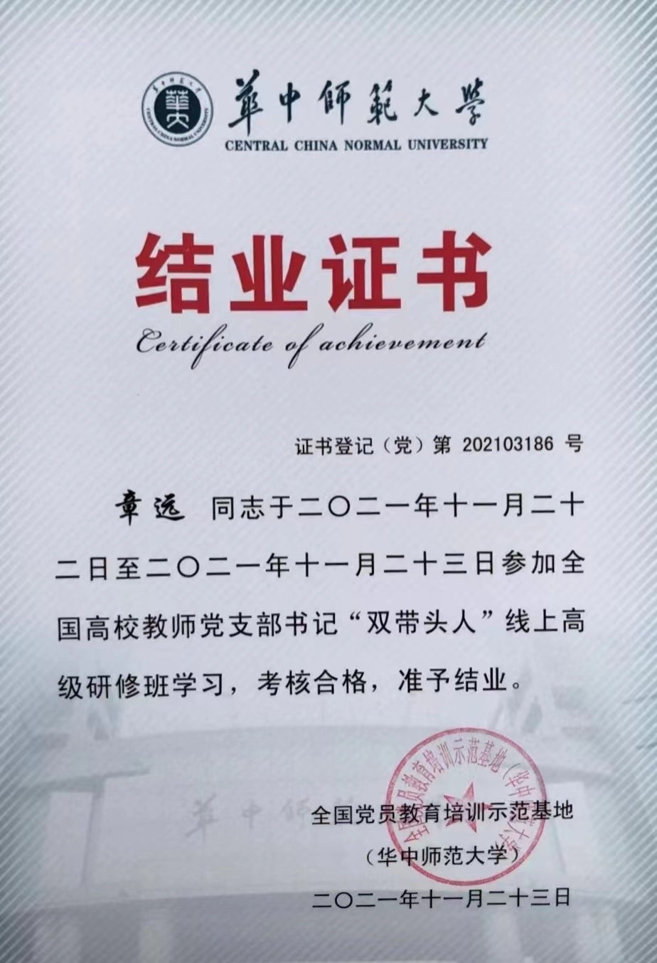 章远研究员参加2021年全国高校教师党支部书记“双带头人”线上高级研修班