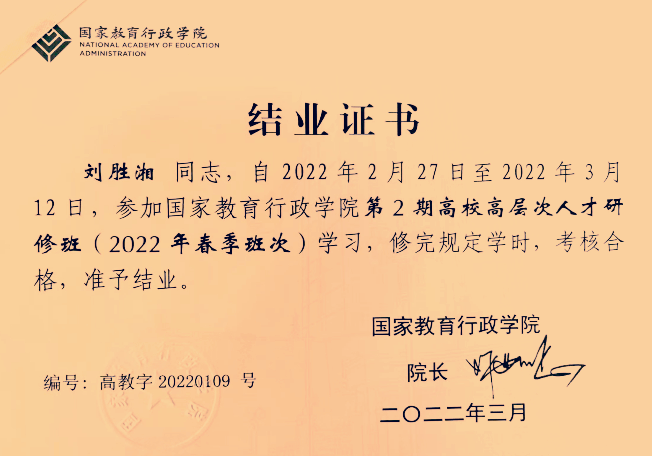 2022年2月27至3月12日,上海外国语大学中东研究所刘胜湘教授参加国家教育行政学院举行的第2期高校高层次人才研修班并顺利结业。教育部党组书记、部长、国家教育行政学院院长怀进鹏出席研修班开幕式并讲话,全国高校不同学科的131位学者参加了研修班的学习与研讨。